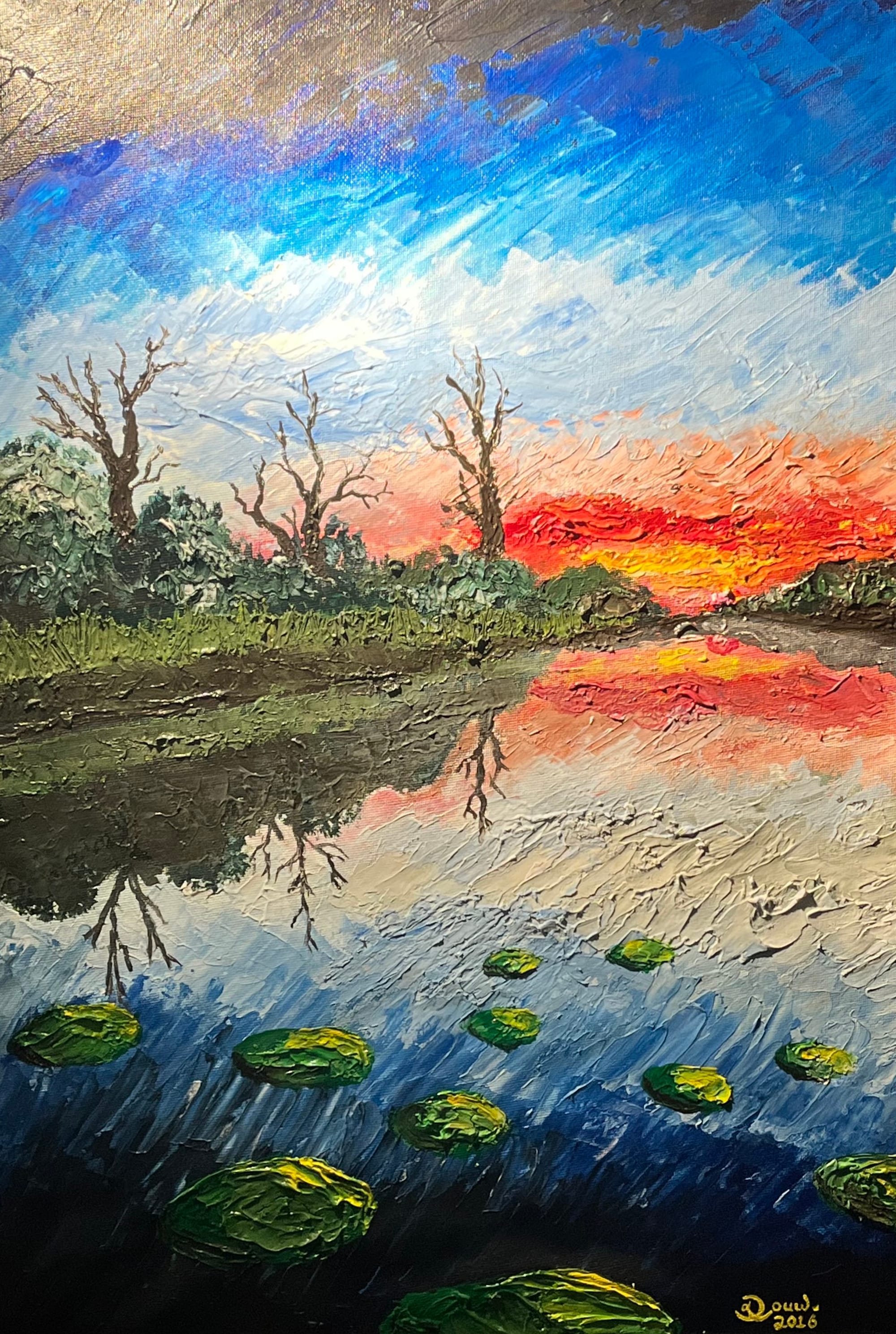 He encouraged me to experiment and explore different techniques, until I found the one that matches my style and creativity. This is why most of my work is done with acrylic on canvas, done by brush and pallet knife techniques. I often play around with different mediums to create unique textures and patterns.